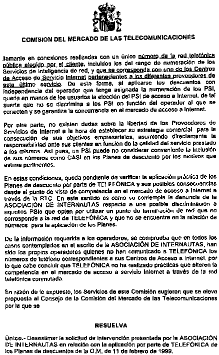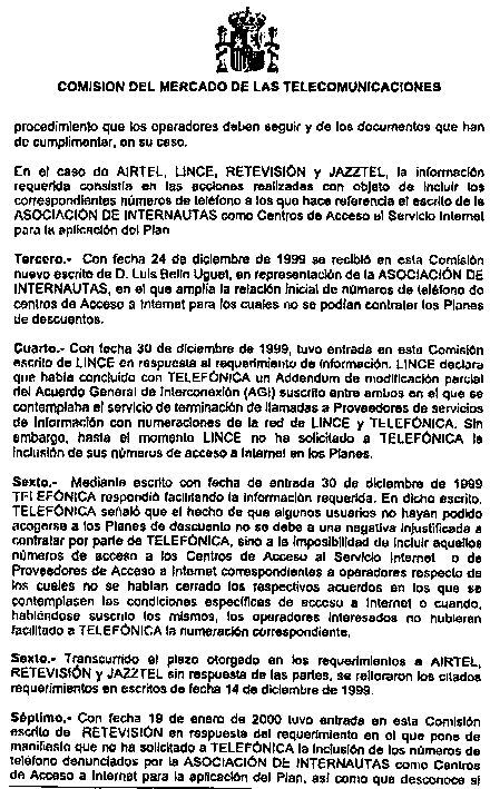 la adopte las medidas pertinentes para obligar a Telefónica y al resto de operadores al