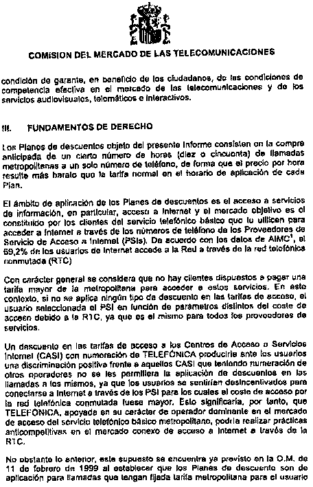 TERCERA.- Aunque se admita que Telefónica no ha realizado